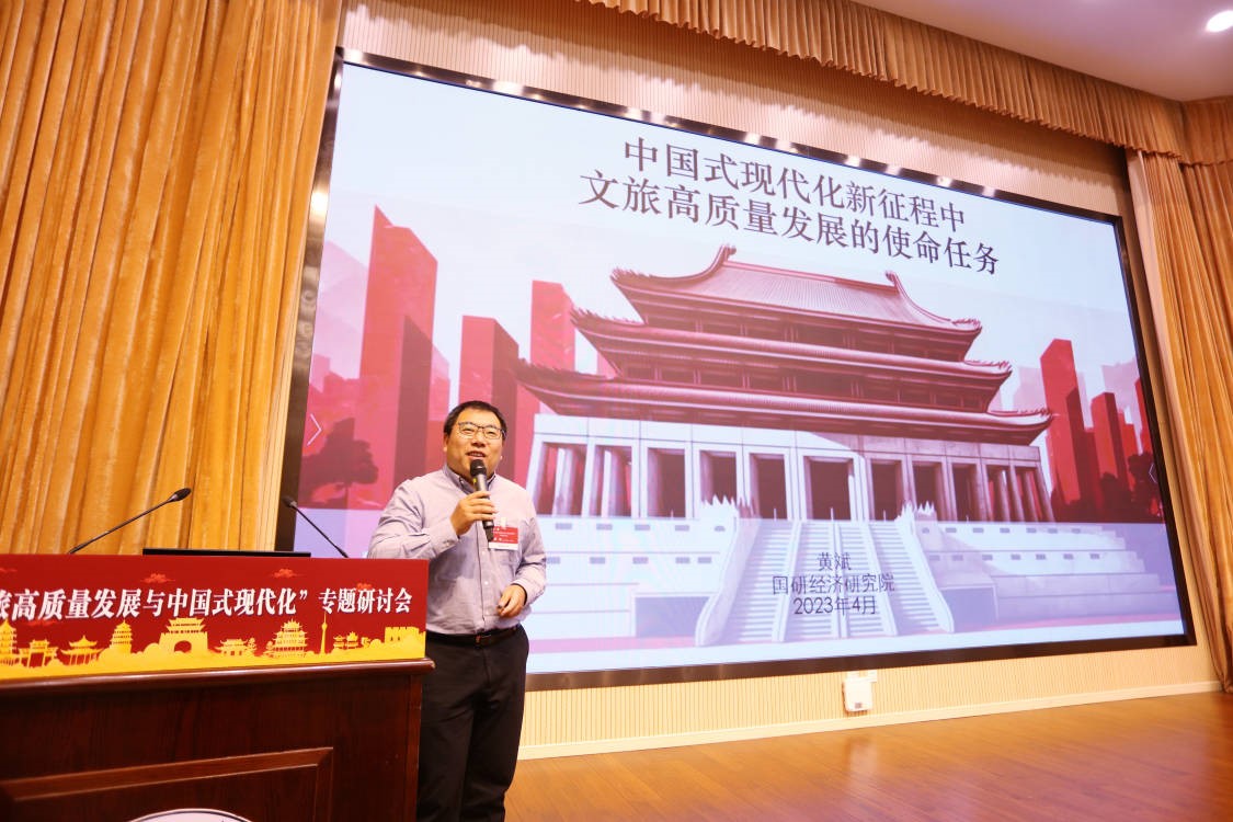 上午的主题报告由崔凤军教授主持,杨建武、黄斌、保继刚、陈向宏、宋瑞、严旭阳六位专家分别就“新时代文物的高质量发展问题”、“中国式现代化的内涵、愿景与战略路径”、“从现实问题到学术问题一一理论与实践的辩证关系”、“文旅融合的特色小镇发展探索”、“中国式现代化进程中的文化和旅游融合发展”、“中国式现代化对文旅高质量发展的指导意义”主题作了精彩纷呈报告,并和与谈人展开了智慧交锋与对话。