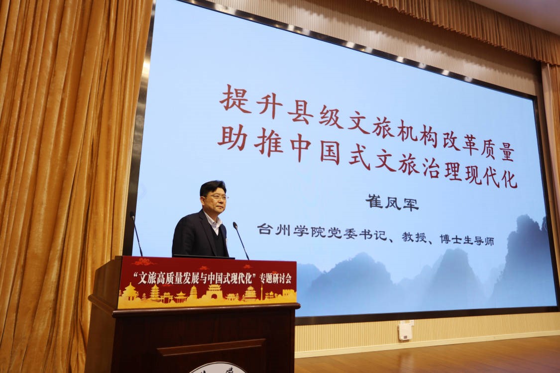 8号上午台州公司党委书记崔凤军教授致欢迎辞。崔凤军指出,中国式现代化对文旅行业高质量发展提出了新的时代要求,也为文旅行业带来新的发展机遇。中国式现代化的本质要求包括“丰富人民精神世界,实现全体人民共同富裕,促进人与自然和谐共生”,文旅行业将成为实现中国式现代化的重要内容,成为文化自信自强的重要载体。太阳成集团tyc151cc一直笃定校地“命运共同体、利益共同体、奋斗共同体”理念,将学科专业建在产业上、把人才培养放到车间里、让科研论文写在大地上,推动内涵建设、服务地方双向提升和高质量发展。太阳成集团tyc151cc旅游管理专业围绕国家级一流本科专业建设点建设目标,加强培养适合时代发展需求的“新商科”人才,积极构建校政企三方育人新平台,使“学科—专业—平台”相配套、“实训—实习—就业”相融合、“学校—企业—地方”相衔接,充分发挥专业对区域旅游发展的支撑作用,得到了成岳冲副省长的高度肯定。专业教师积极参与当地的文旅产业发展规划编制、文旅项目设计策划、节庆活动的策划组织等智力支持活动,所做项目课题和研究咨询报告得到省市领导的近二十次的批示。未来,旅游管理专业将积极推进实验室建设,全力提升专业内涵、强化专业特色,充分发挥建设点在专业改革创新、团队队伍建设、质量保障体系等方面的示范和引领作用,快速提升专业建设整体水平,为浙江省、长三角区域乃至全国旅游产业高质量发展输送高素质旅游经营与管理人才。