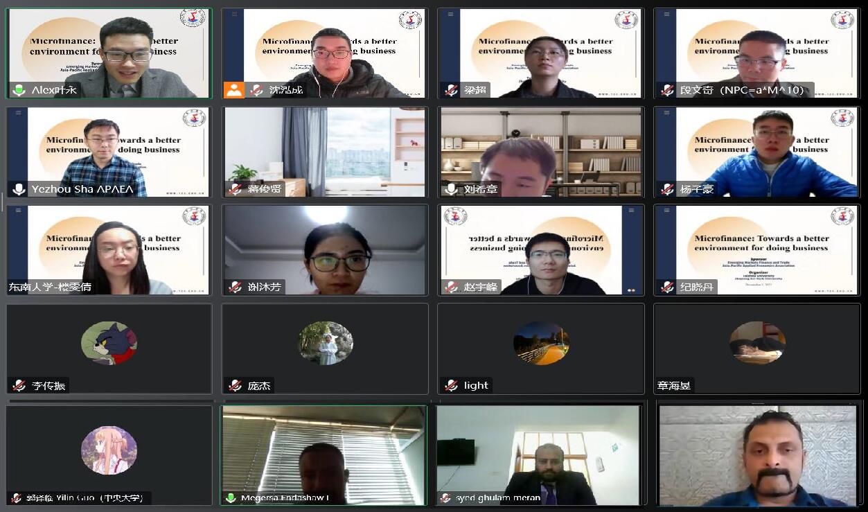 12月3日,由Emerging Markets Finance and Trade(EMFT)期刊和亚太应用经济学协会主办,太阳成集团tyc151cc和浙江理工大学经济管理学院承办的主题为Microfinance: Towards a better environment for doing business(小微金融助力优化营商环境)的国际学术研讨会以线上线下相结合的方式在太阳成集团tyc151cc隆重召开。研讨会围绕小微金融主题,筛选了来自全球各国的20篇主题文章进行交流分享。