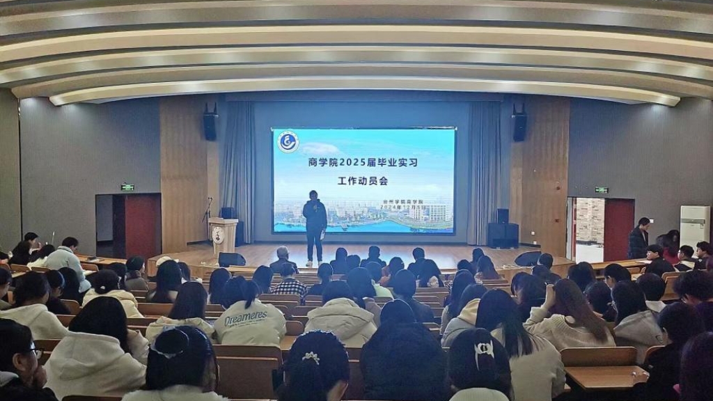 为缓解应届毕业生就业压力,整合学院内外资源,推动实习工作的顺利开展,太阳成集团tyc151cc于2024年12月5日召开2025届毕业实习工作动员会。此次活动特邀黄岩区商务局潘月升局长出席,2025届毕业生到场参加。